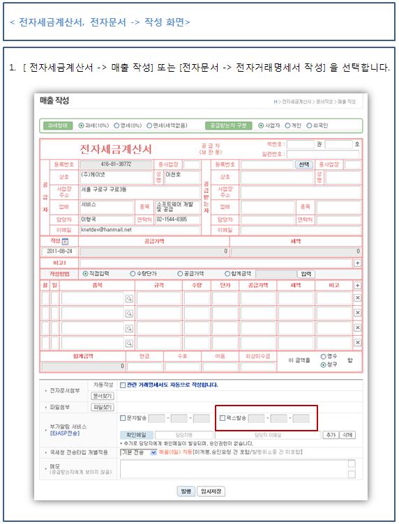 전자세금계산서, 전자계산서, 전자거래명세서, 전자입금표 등을 발행한 후에 공급받는자에게 신속하게 전달하기 위한 팩스 전송 기능이 추가되었습니다. 또한, 사업자등록증, 통장 사본까지도 별도의 작업 없이 간편하게 전송하실 수 있습니다. (예정) |