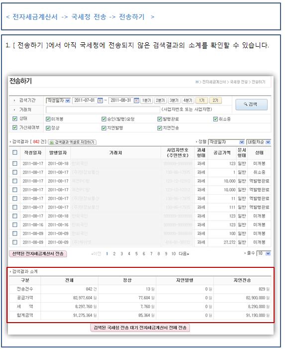 | 위치 | 전자세금계산서 -> 국세청전송 | ||