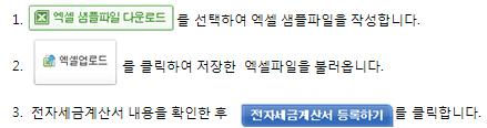 1. 전자세금계산서 대량등록 절차 [ 전자세금계산서 -> 대량서비스 -> 전자세금계산서 대량등록 ]