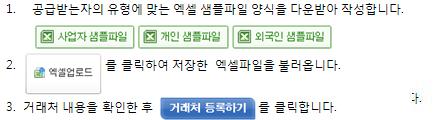 5. 거래처 대량등록 절차 [ 마이페이지 -> 관리자함 -> 거래처 관리 -> 거래처 대량등록 ]