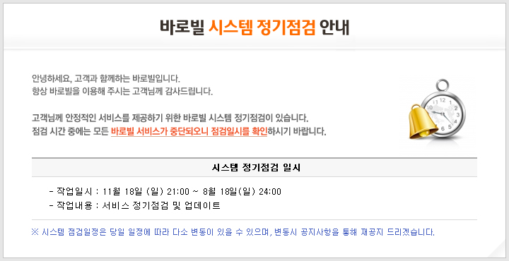 | 제목 | [공지] 2012년 11월 시스템 정기점검 안내 | 등록일 : 2012-11-16 | 조회수 : 1,576 |